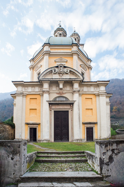 The Church of the Holy Cross in Riva San Vitale was probably built beginning in 1588 to the designs of architect Giovanni Antonio Piotti of Vacallo (1529-1596), at the behest of prelate Giovanni Andrea Della Croce. The building takes the form of a central nave with three chapels: the main one dedicated to the Holy Cross, the lesser ones to the Assumption of the Virgin and St Bernardine of Siena. The interior was decorated beginning in 1591 by the Pozzi brothers, painters from Valsolda, and by Camillo Procaccini (1561-1629), originally of Bologna but later based in Milan, who undertook the completion of five oil paintings within a year. Other contracts were signed with carpenters, stonemasons, and the stuccatori Domenico Fontana of Muggio (documented 1582-1630) and Pietro Mazzetti of Rovio (documented 1592-1632).